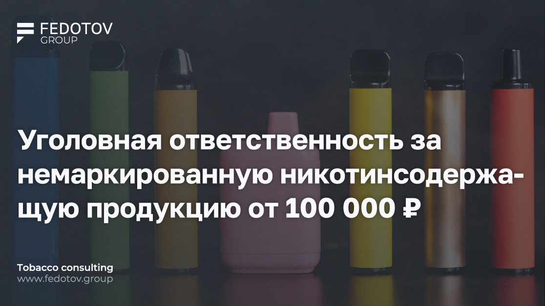 Сейчас уголовная ответственность за работу с немаркированной никотинсодержащей продукцией действует, когда стоимость продукции с нарушениями достигает 3 500 000 рублей.